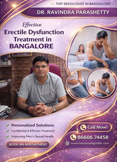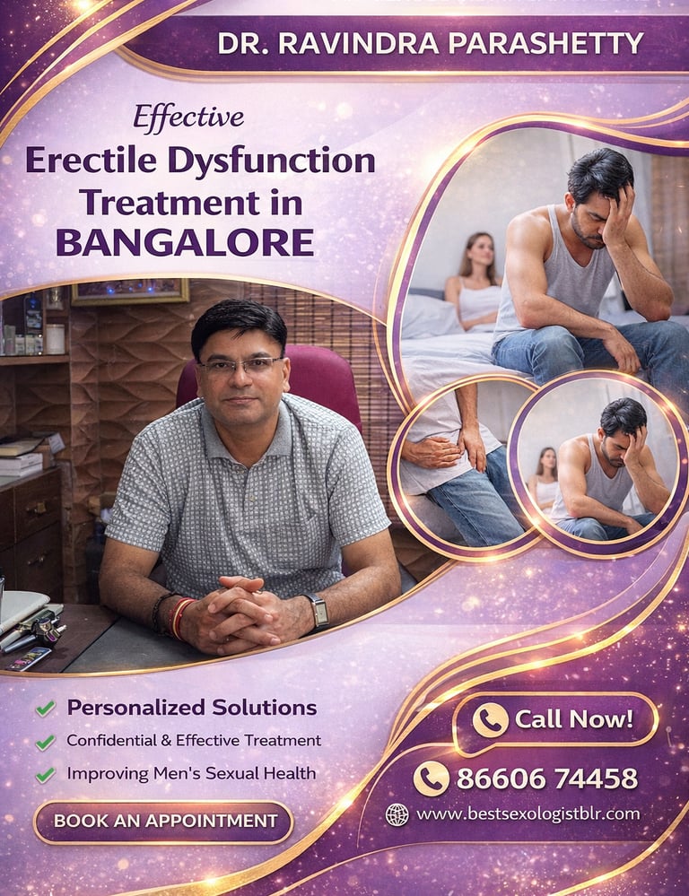 Erectile Dysfunction (ED) is a common men’s health concern that can affect confidence, relationships, and overall wellbeing. It may occur due to physical conditions, psychological stress, lifestyle factors, or a combination of these. Seeking timely medical guidance is important for understanding the underlying cause and exploring appropriate management options. If you are looking for professional support for erectile dysfunction treatment in RR Nagar, Bangalore, expert consultation is available with Dr. Ravindra Parashetty, a senior sexologist known for a patient-centric and confidential approach.