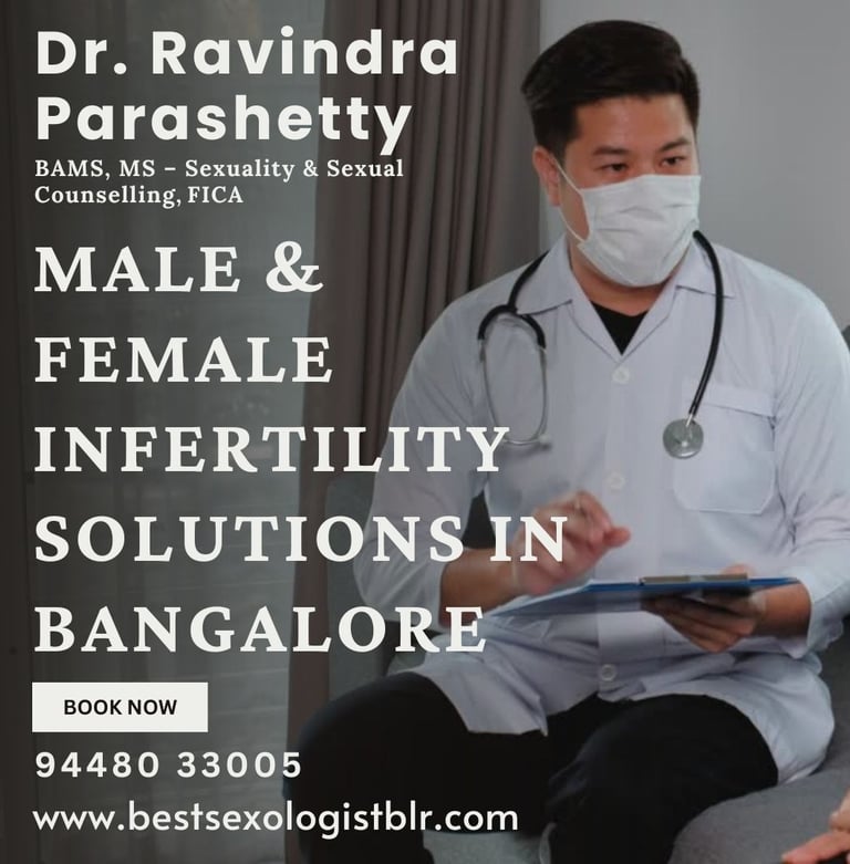 Infertility can be emotionally challenging for couples, but the right guidance and treatment can make a significant difference. At our clinic in Bangalore, Dr. Ravindra Parashetty, a trusted specialist in Sexuality and Sexual Counselling, offers personalised support for both male and female infertility concerns. With years of experience in holistic and evidence-based care, the clinic focuses on identifying the root cause and creating a treatment plan that improves reproductive health naturally and effectively.