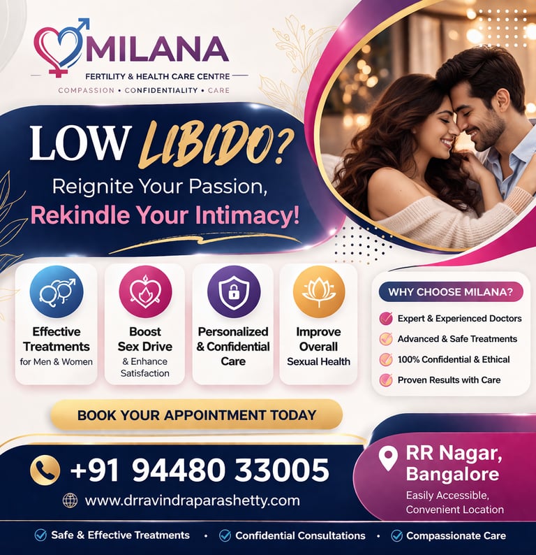 If you are facing challenges related to low sexual desire, don’t delay seeking professional help. At Milana Fertility & Health Care Centre, we provide trusted and result-oriented low libido treatment in RR Nagar Bangalore.