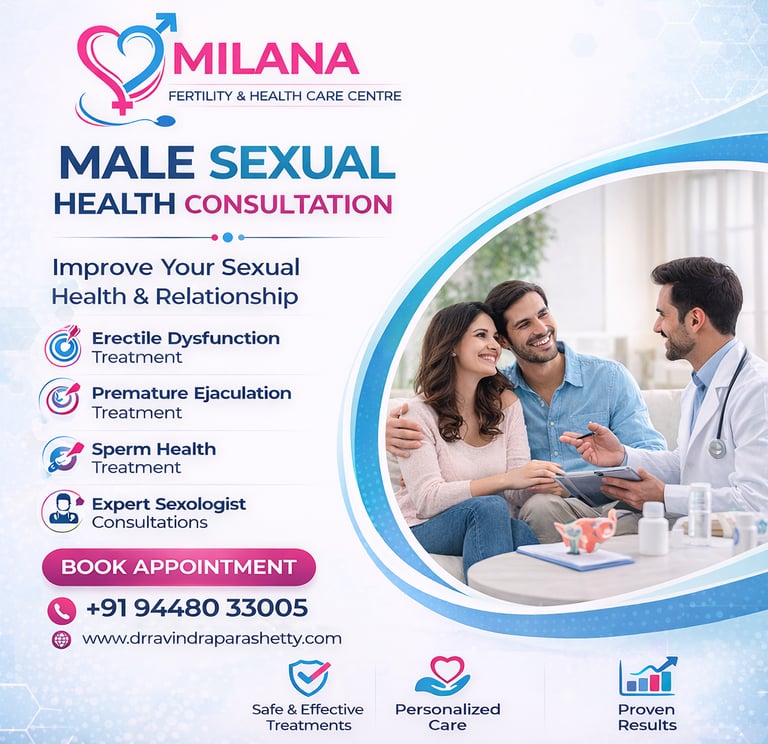 Maintaining a healthy relationship requires emotional connection, mutual understanding, and good sexual health. At Milana Fertility & Health Care Centre, patients receive professional support for improving intimacy, confidence, and overall relationship wellness. The clinic offers expert male sexual health consultation in RR Nagar, Bangalore, focusing on safe, confidential, and personalized care for individuals and couples.