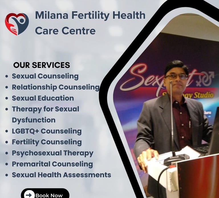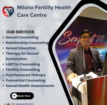 At Milana Fertility Health Care Centre, we believe that good sexual health is essential for a happy and fulfilling life. Our expert team of counselors and therapists offers a safe, private, and supportive space where individuals and couples can openly discuss their concerns. With years of experience and a compassionate approach, we help you understand and improve your emotional, sexual, and reproductive well-being.