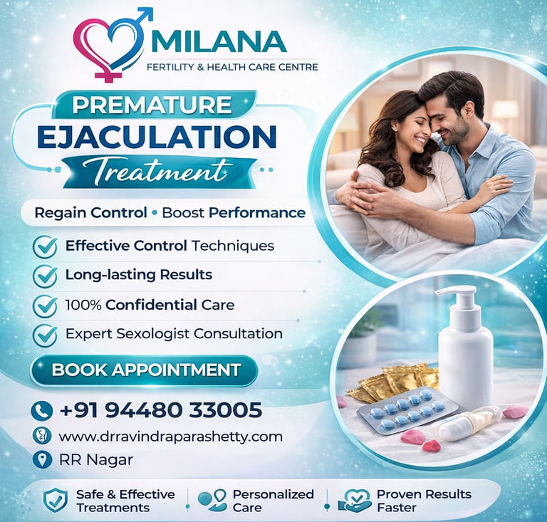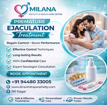 Premature ejaculation is one of the most common concerns affecting men’s sexual health today. While it may feel distressing, it is important to understand that this condition is treatable with the right medical guidance and support. At Milana Fertility & Health Care Centre, we provide professional and confidential premature ejaculation treatment in RR Nagar, helping individuals regain control and improve overall well-being.