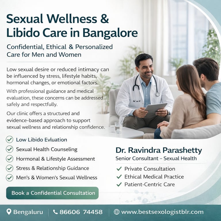 Sexual wellness is an important part of overall physical and emotional health for both men and women. Individuals and couples in Kengeri, Bengaluru, often experience concerns related to low libido or reduced sexual desire due to a variety of medical, psychological, and lifestyle factors. Addressing these concerns in a respectful and professional healthcare environment can help individuals better understand their condition and explore suitable management options.