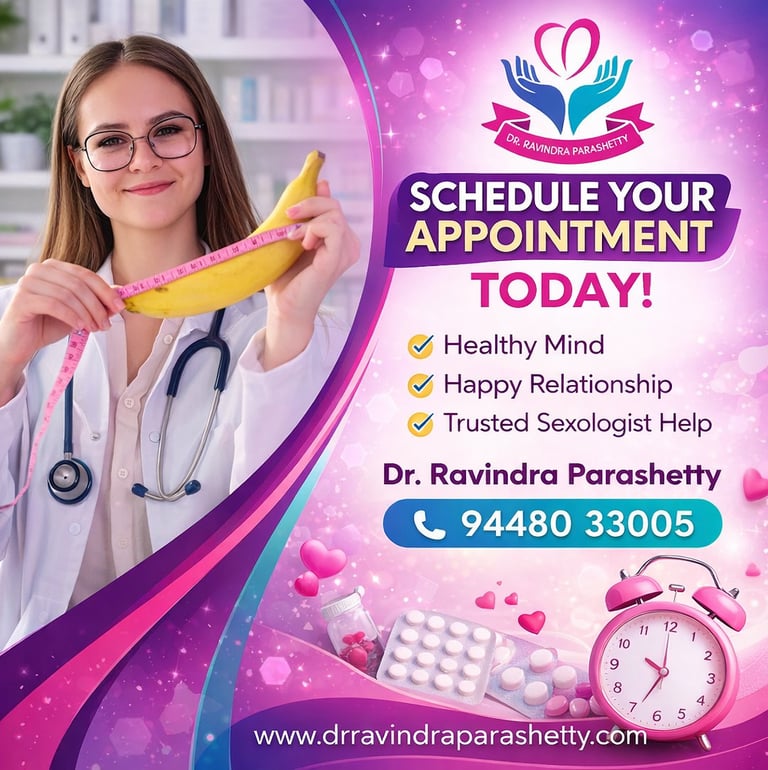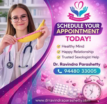 Sexual health, emotional well-being, and relationship harmony are essential aspects of a balanced life. Dr. Ravindra Parashetty is a trusted sexologist in Bangalore who provides professional, confidential, and ethical consultation for individuals and couples. With a patient-focused approach, the clinic offers a safe space to discuss concerns related to intimacy, communication, emotional stress, and relationship challenges.
